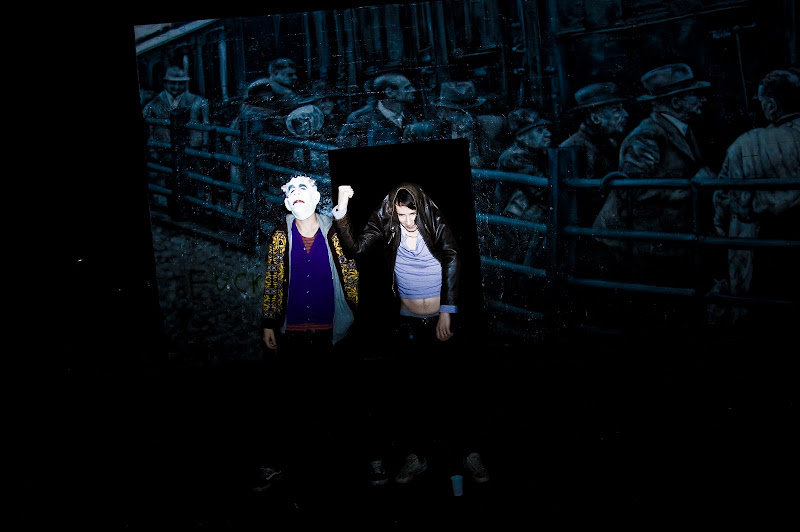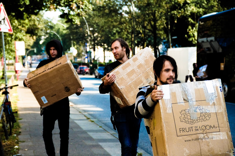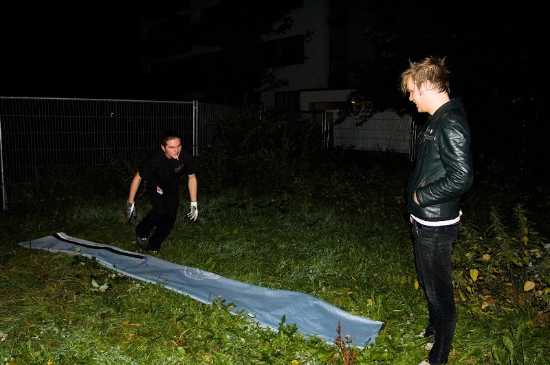 Folding the backdrop after the show, outside Grunspan, Hamburg.