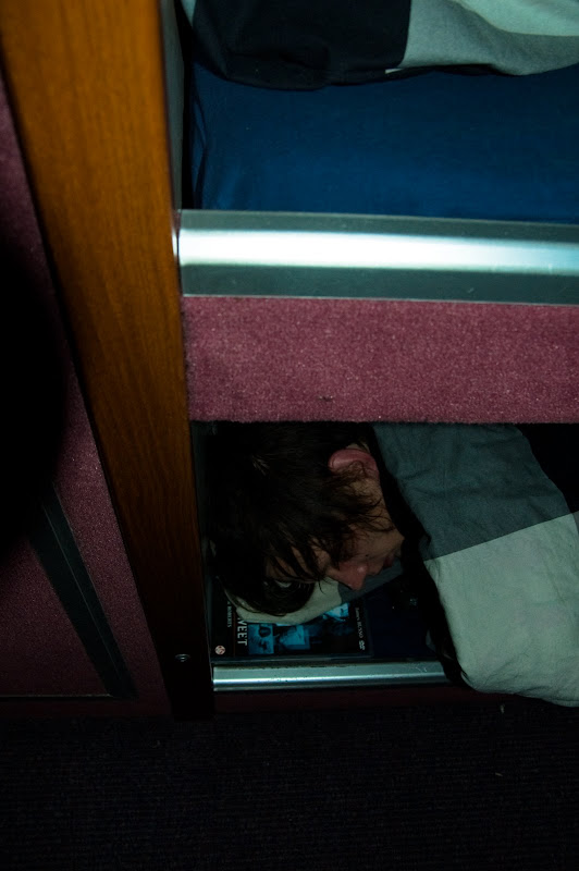 Gorgeous merch-man Antti chilling in the bus.
