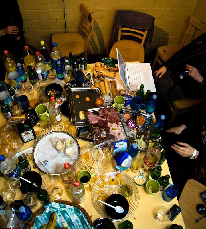 While we were playing, some hyperactive kids came and mesed up our backstage! They drank all the wine as well!