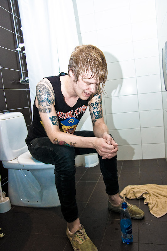 As you hardly ever have the chance to do laundry on tour, the gig-clothes are worn again and again and again. At some point the smell of them get’s so bad, it feels like the insides of your nose is burning if you sniff too close. We’ve always wondered if the people in the front row can feel it. Maybe it adds an element of real danger. Jussi and Miikka breath after a show.